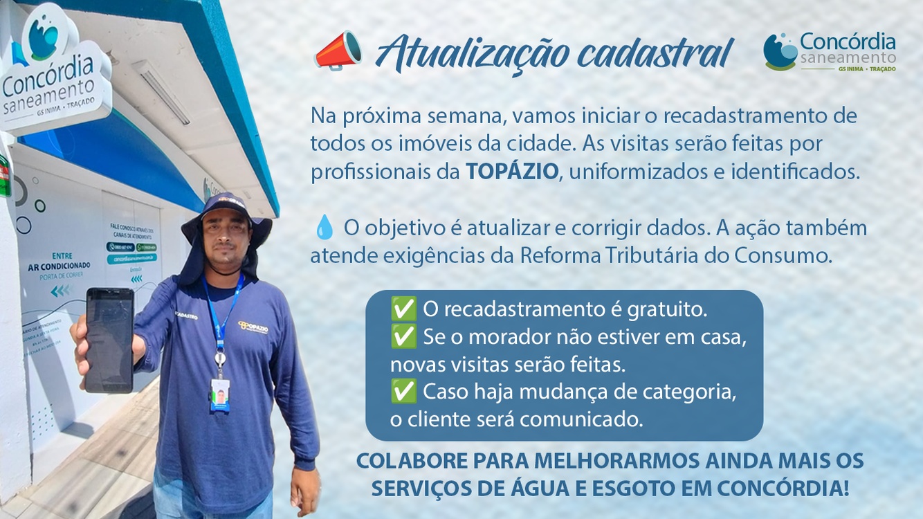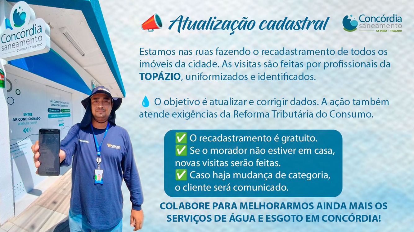 Visitas e entrevistas com responsáveis por imóveis serão feitas por profissionais da empresa Topázio, devidamente uniformizados e identificados