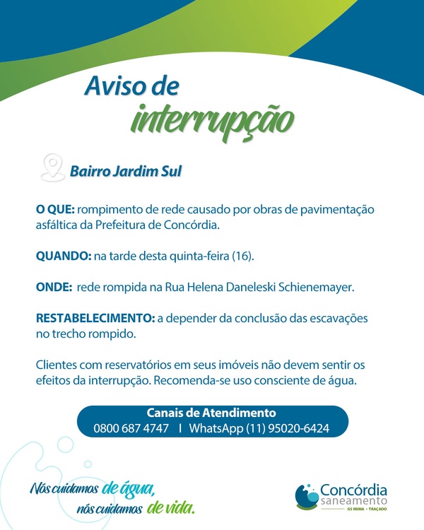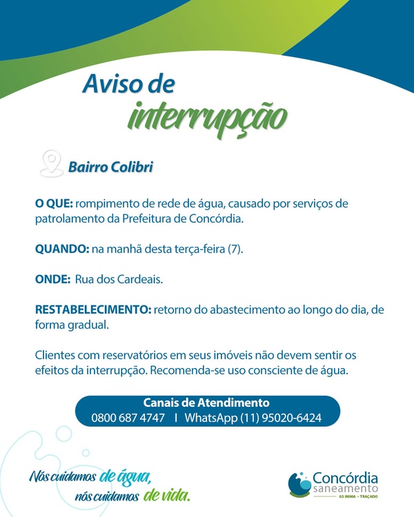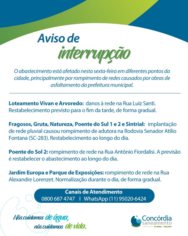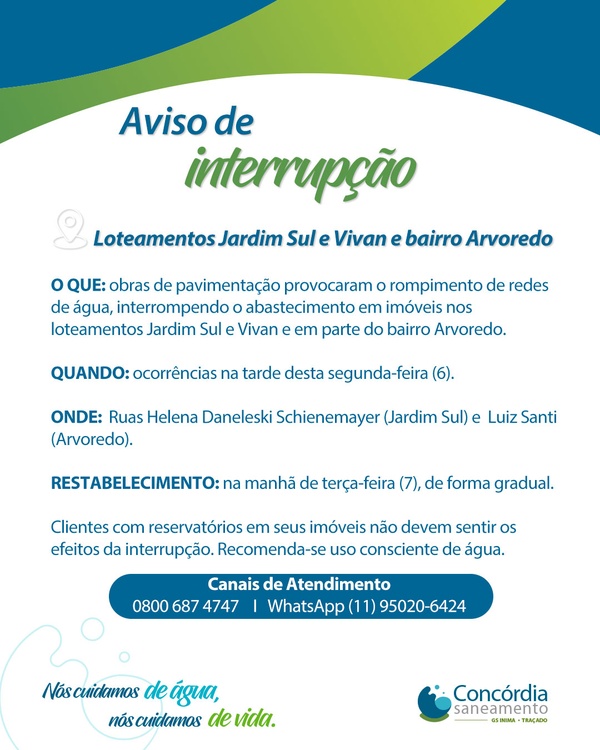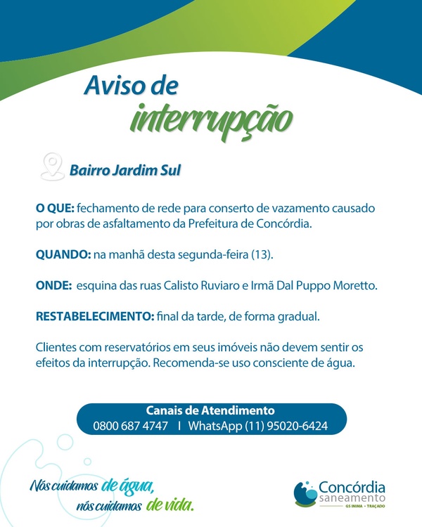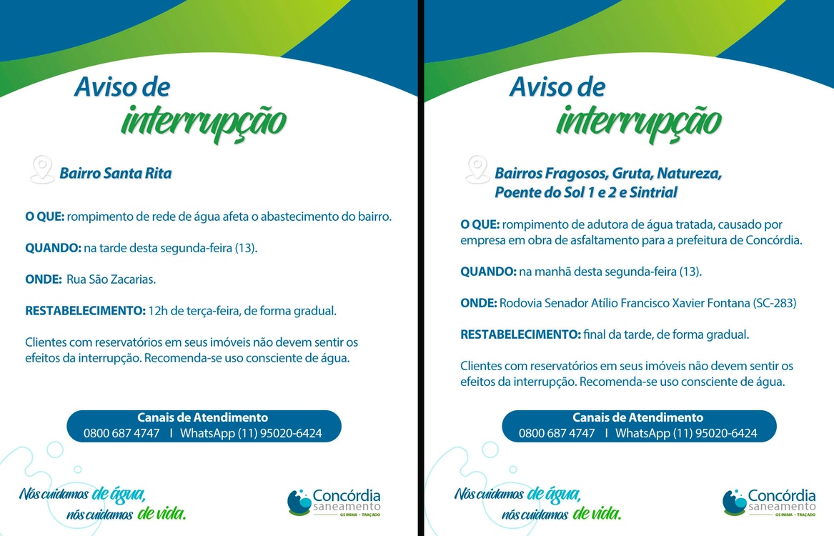 Volume de água que deixou de ser desperdiçado foi de 433,6 milhões de litros de água, suficiente para abastecer Concórdia por 43 dias