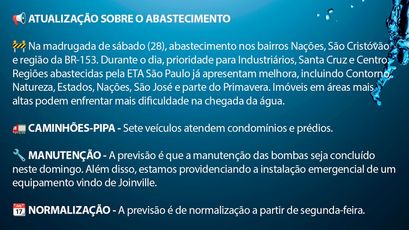 Concessionária explica causas e medidas adotadas para mitigar a crise que atinge parte da cidade desde a quebra de bombas na captação de água do Rio Jacutinga, na madrugada de quarta-feira