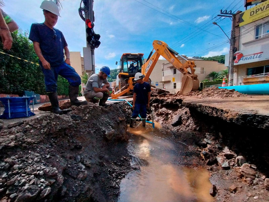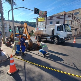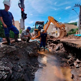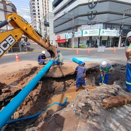 O trabalho foi intenso desde as 8h pela complexidade de localizar o ponto do rompimento e definir a melhor estratégia de reparo. O trabalho foi executado em local que passou por manutenção recente, mas voltou a apresentar afloramento de água na via pública. Com a correção na adutora de 200 milímetros, o local ficará temporariamente isolado, para monitoramento da rede e posterior recapeamento de asfalto.