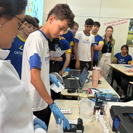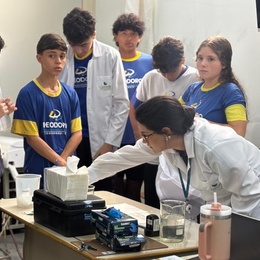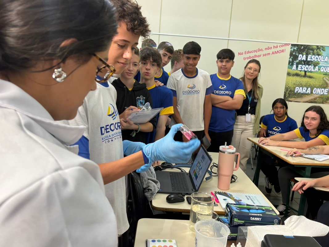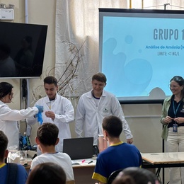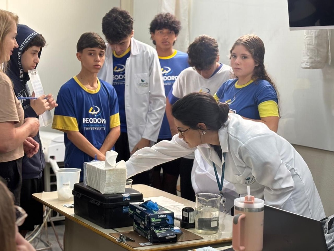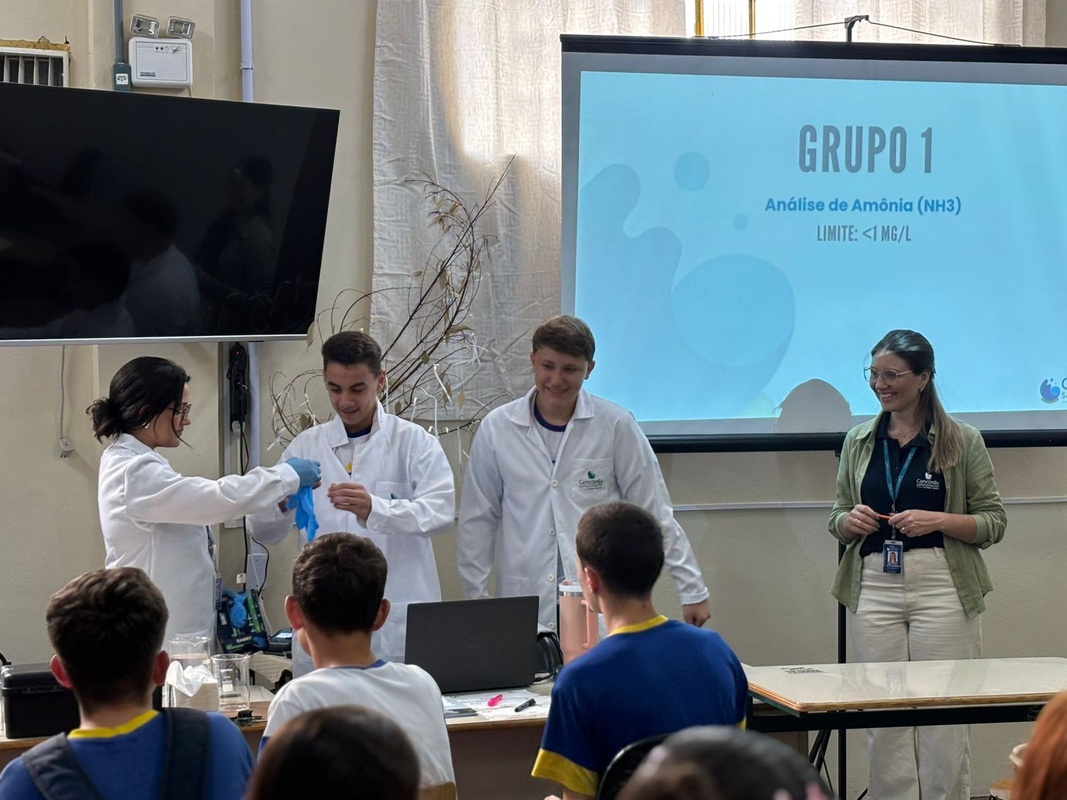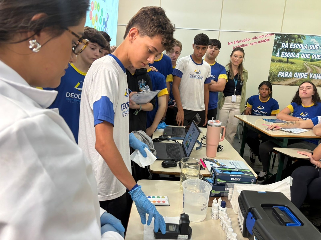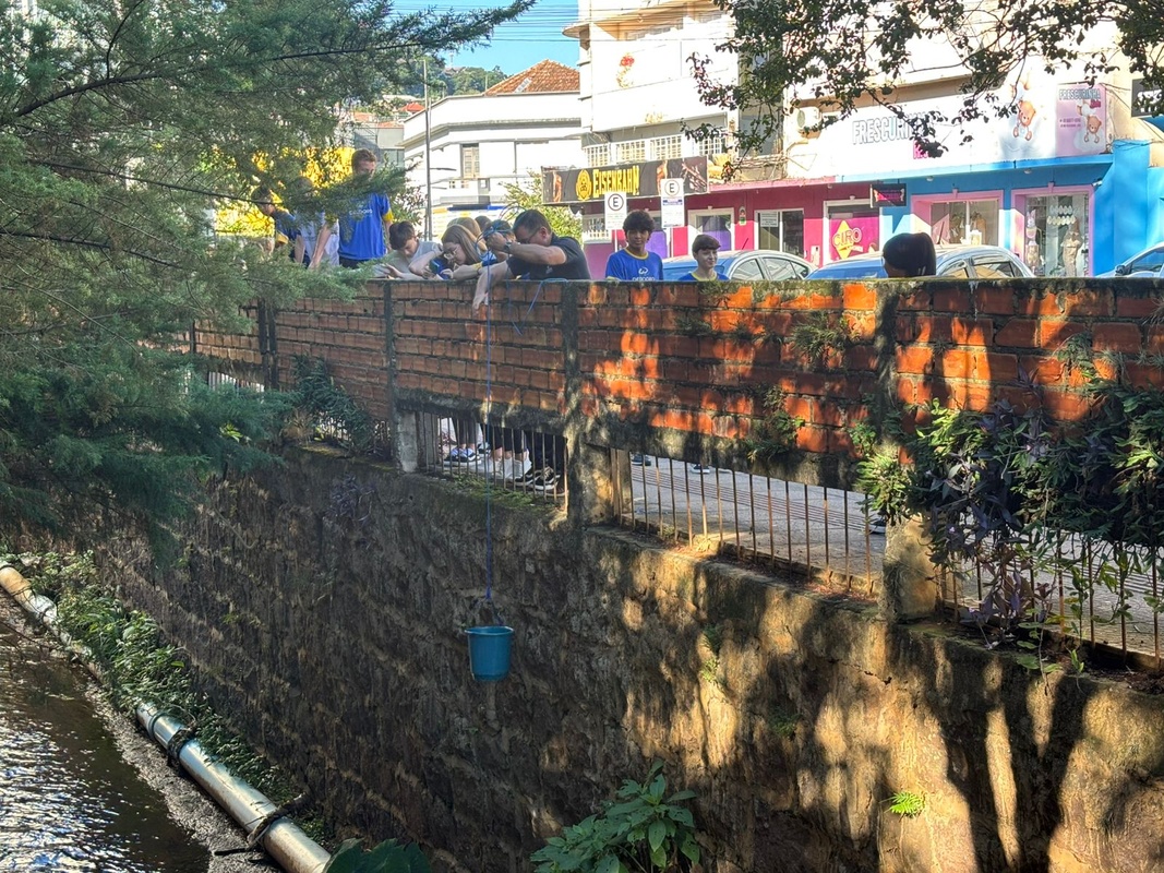 Os estudantes também participaram de uma atividade prática, realizando análises de água coletada no Rio dos Queimados. A vivência aproximou o conteúdo técnico da realidade local, estimulando a reflexão sobre os impactos do lançamento inadequado de esgoto e a importância da expansão do sistema de esgotamento sanitário no município.
