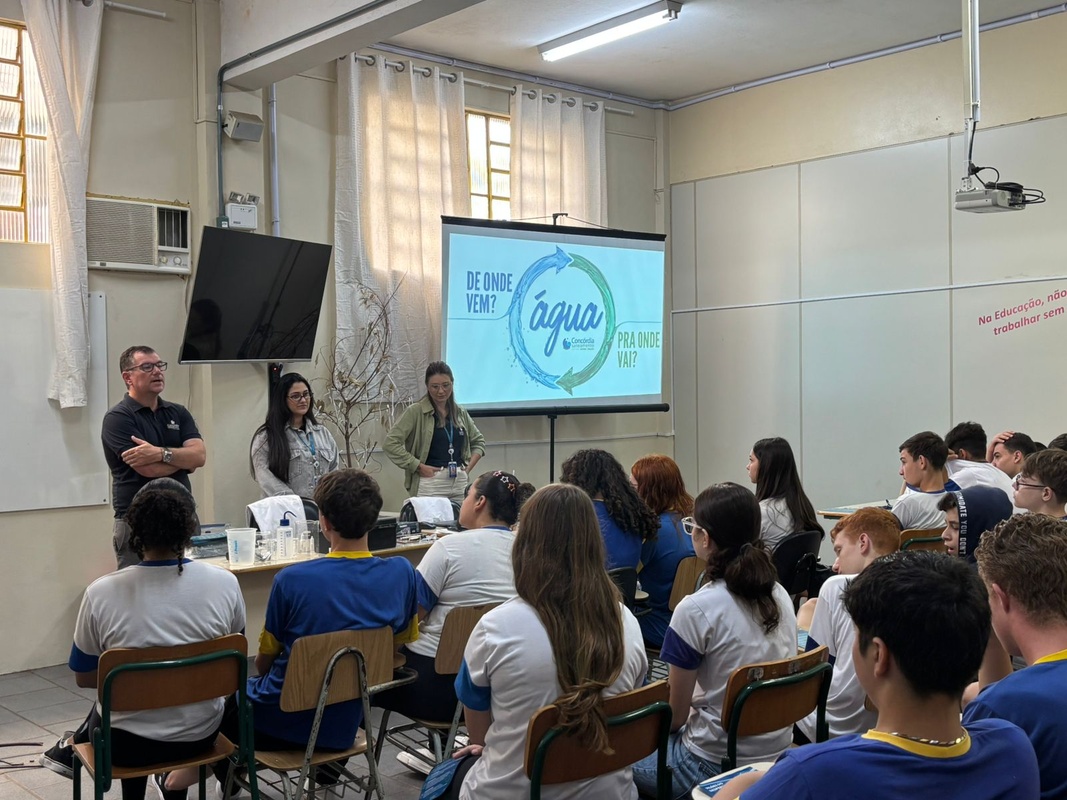 A primeira atividade do Herdeiros do Futuro em Concórdia foi realizada em março, em alusão ao Dia Mundial da Água, com cerca de 90 alunos da Escola de Educação Básica Deodoro. A atividade foi desenvolvida de forma didática e interativa, abordando temas como o funcionamento do tratamento de água e os parâmetros de qualidade para garantir a segurança da água distribuída à população. Também foram apresentados conceitos sobre o esgotamento sanitário, incluindo o que é o esgoto, como ocorre seu tratamento e o papel da Concórdia Saneamento na proteção dos recursos hídricos.