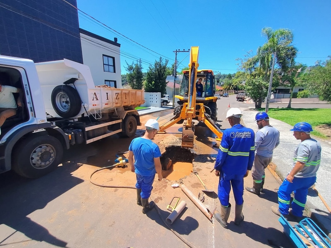 Ainda durante a manhã, uma rede de 63 milímetros foi consertada entre as rodovias Caetano Chiuchetta (SC-283) e Pedro Rogério Garcia. O vazamento oculto foi identificado em um barranco próximo à rotatório e à entrada do Cemitério Parque Concórdia. O vazamento estava comprometendo o abastecimento na região.