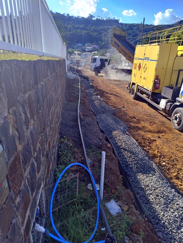 Durante a execução das obras, as tubulações permanecem temporariamente expostas, sendo enterradas conforme o avanço do asfaltamento. Na etapa seguinte, a concessionária realiza a padronização das ligações domiciliares.