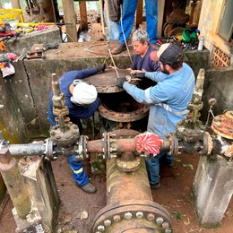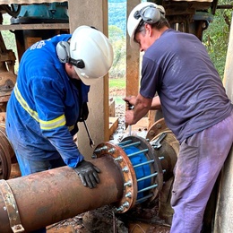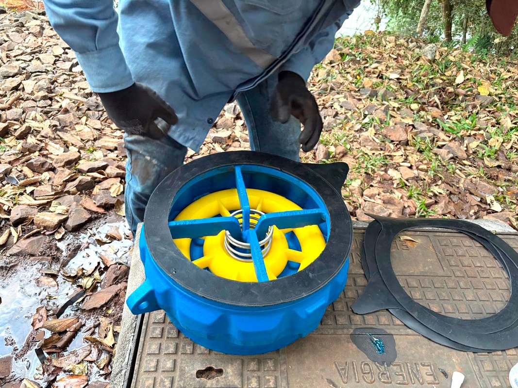 Também foi realizada manutenção na válvula flap, componente essencial para o alívio do golpe de aríete — fenômeno que ocorre quando há interrupção repentina no bombeamento, provocando o retorno brusco da água na tubulação. A atuação da válvula flap, nesse contexto, é fundamental para proteger os equipamentos e a integridade da rede, absorvendo o impacto hidráulico e estabilizando o sistema.