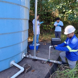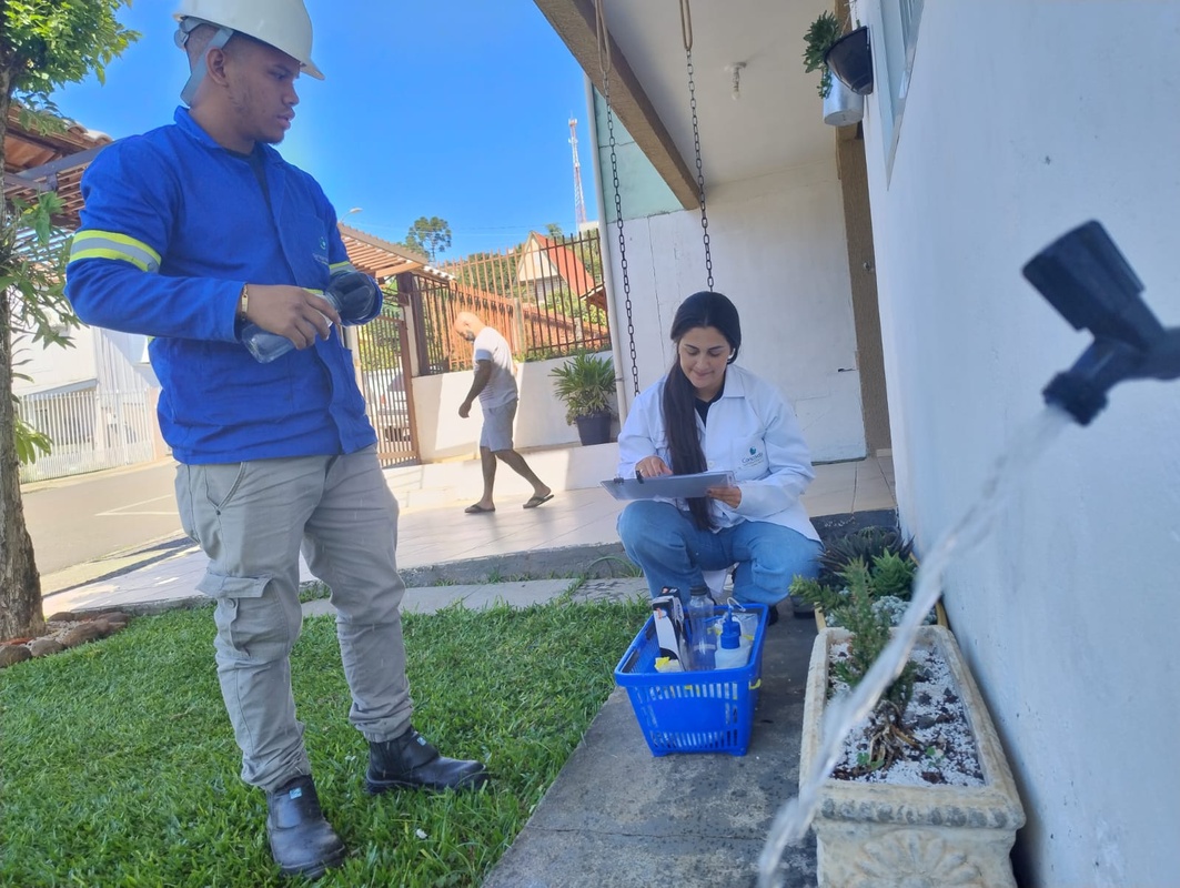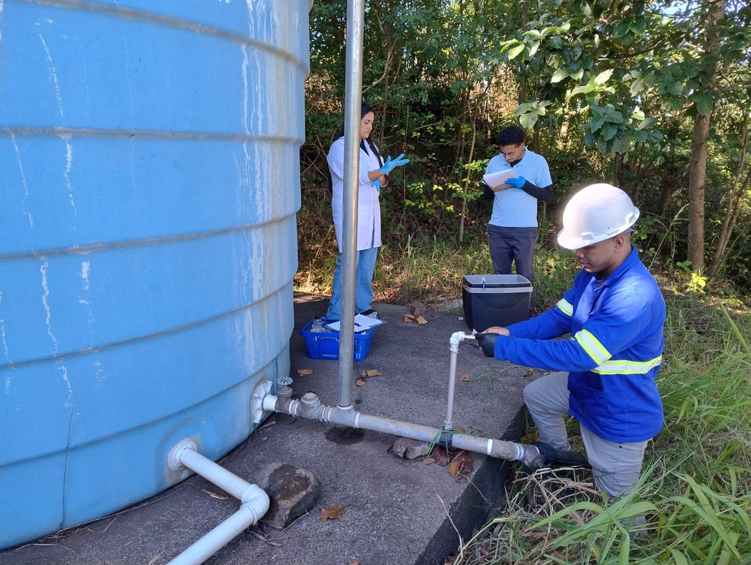 Um veículo identificado com a equipe de monitoramento da qualidade da água percorre locais aleatórios, como em áreas de grande circulação de pessoas, próximo a hospitais e escolas e em final de redes. As coletas são feitas em comércios e residências. Os últimos exames do processo são feitos na rede de distribuição.