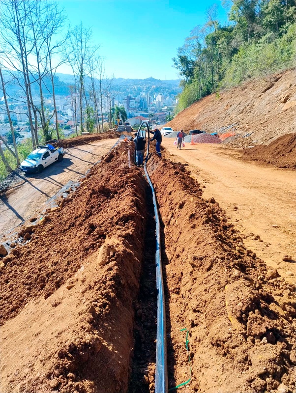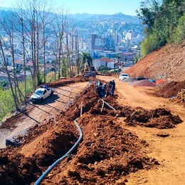 Obra na Rua Fiorelo Sunti vai proporcionar ganhos operacionais no sistema e segurança no abastecimento, sem intermitências. Fotos: Emerson Reimers