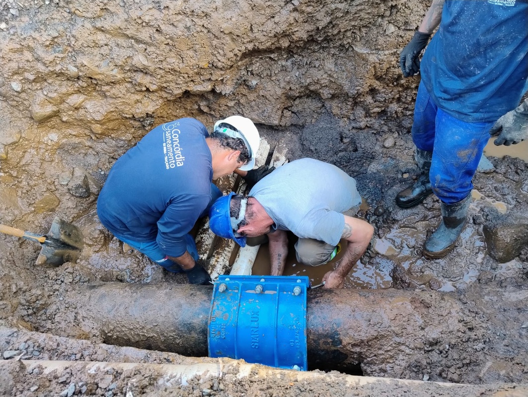 No começo da tarde de terça-feira, trabalhos foram realizados na Rua Anita Garibaldi, esquina com a Rua Mário Dalfovo, para reparar um vazamento na adutora de 300 milímetros. A tubulação de ferro tinha um rompimento que já havia sido consertada pela concessionária anterior. A Concórdia Saneamento instalou uma abraçadeira de vedação tripartida no cano rompido. A obra contou com a colaboração do Corpo de Bombeiros Voluntários de Concórdia e da Diretoria de Trânsito da Prefeitura.
