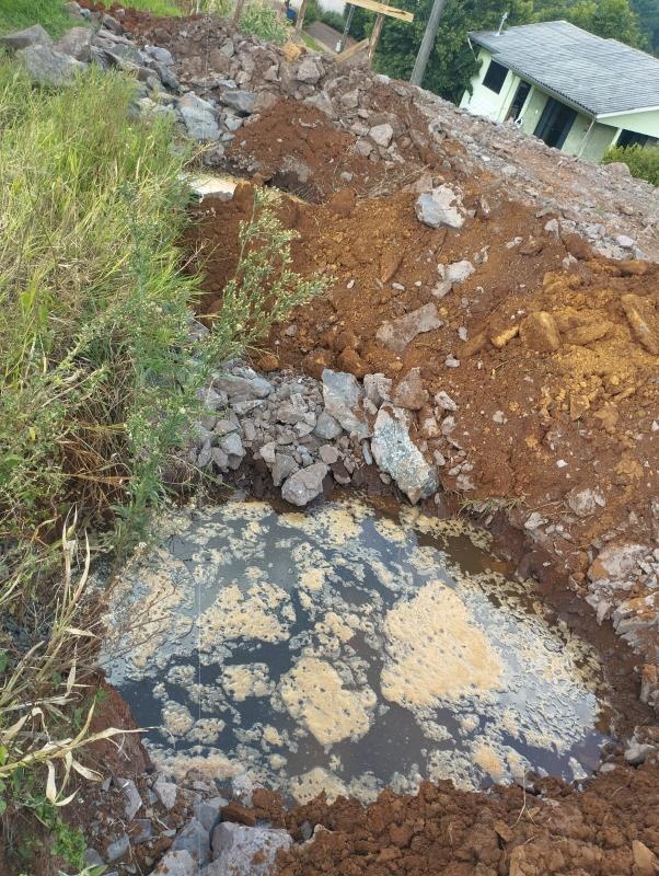 Conforme moradores, uma máquina realizava escavações em um terreno na Rua Francisco Coldebella quando atingiu a tubulação, dando início ao vazamento. O operador da máquina teria continuado o trabalhado, abrindo outros buracos e arrancando a tubulação. Os responsáveis pela obra não foram encontrados.