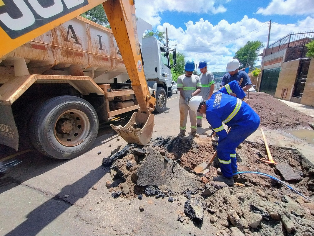 Além de vazamentos ocultos, os problemas são visíveis no asfalto da cidade. A maioria dos consertos efetuados nos últimos dias foi em locais que já haviam sido reparados anteriormente. Um dos vazamentos reparados esta semana foi na Rua Argentina, bairro Nações. O local já havia passado por intervenção anterior, mas voltou a apresentar o problema.