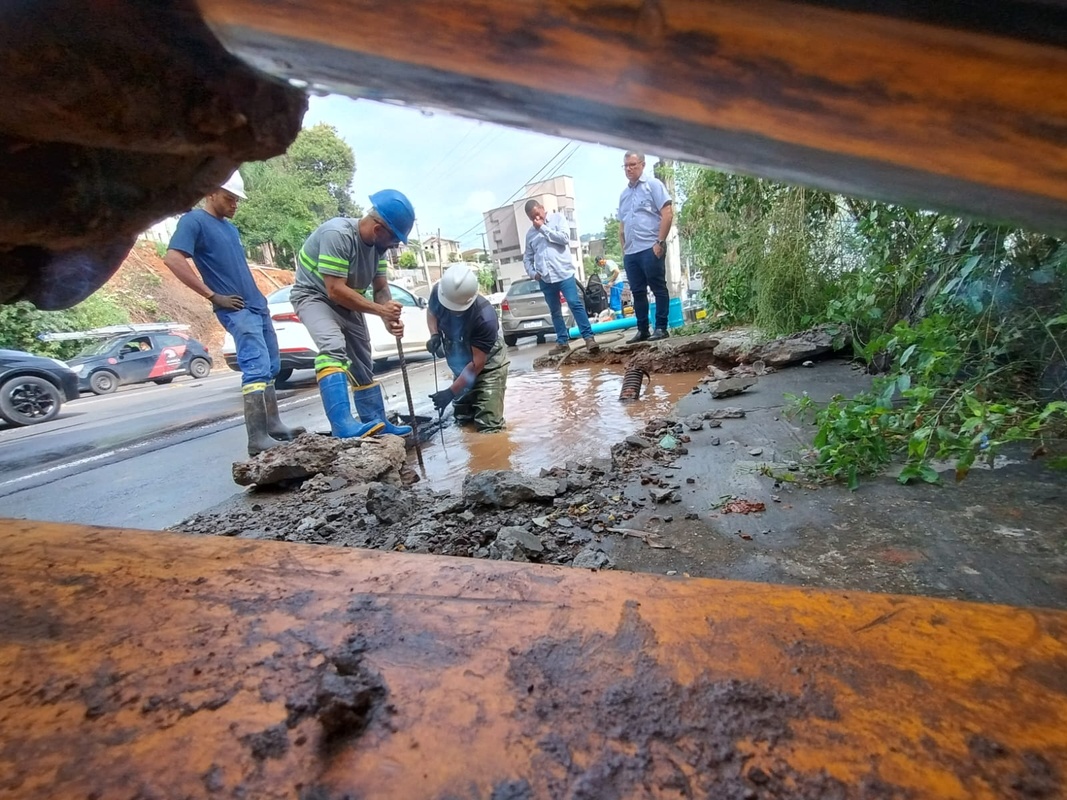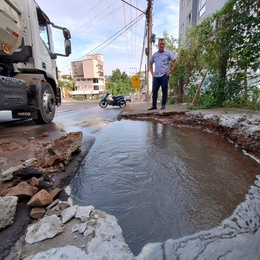 Rompimento de adutora de água tratada afeta abastecimento na região da Rua Tancredo Neves
