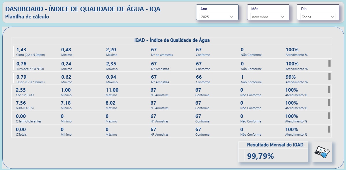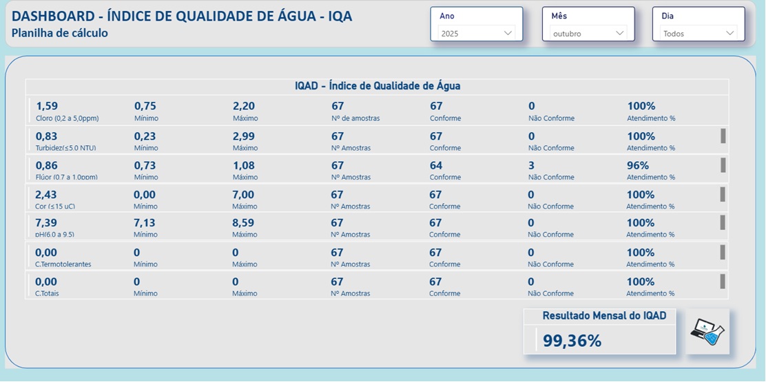 Confira abaixo os resultados mensais do Índice de Qualidade de Água Distribuída (IQAD):